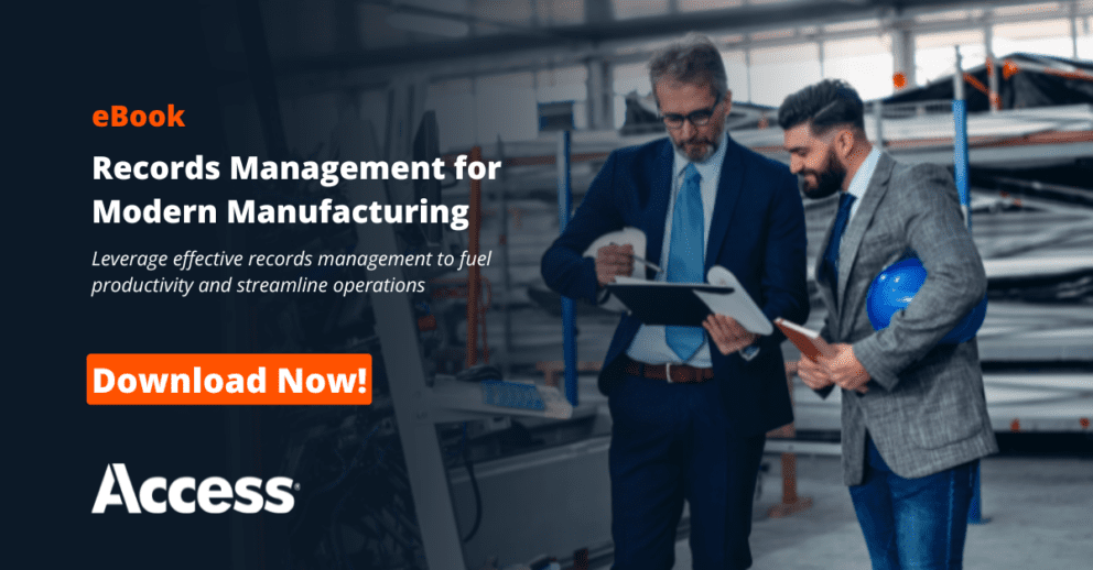 Download our eBook Records Management for Modern Manufacturing to discover how intelligent records management can turn data challenges into opportunities for innovation and growth. Learn how to leverage effective records management to fuel productivity and streamline operations in the era of Industry 4.0!
